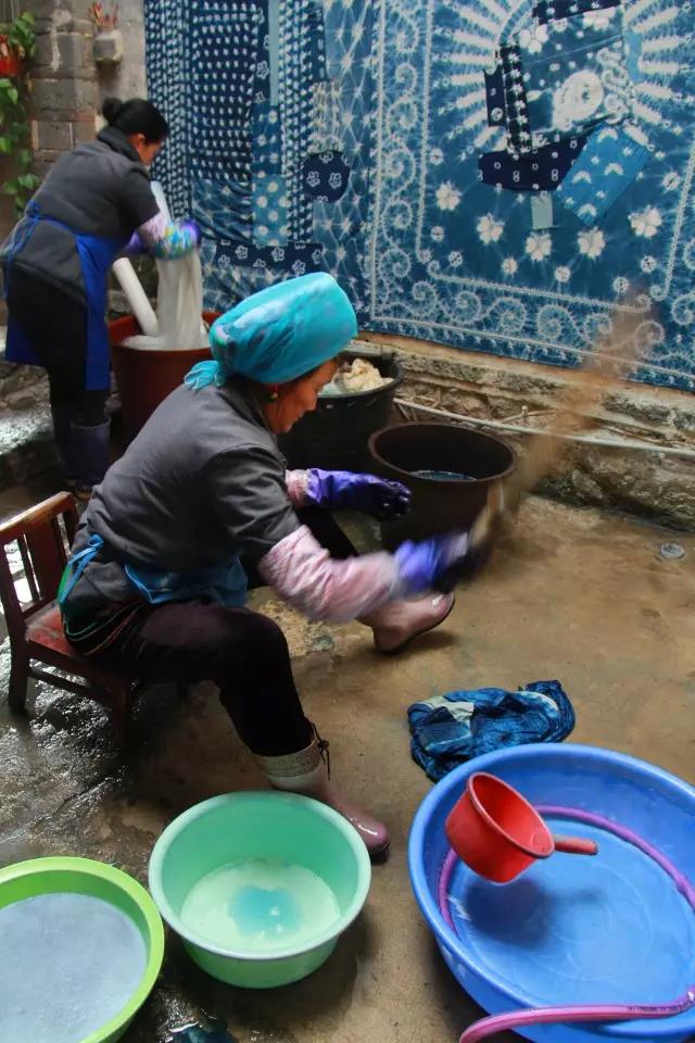 為了得到最好的染料,小白請來村里手藝精湛的老藝人進行技術指導。她和同事在反復的試驗中掌握了竅門。“例如,染料在染色前加入白糖、米酒和草木灰等,染出的藍色才有自然的厚重感。”小白說。