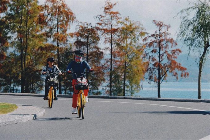 一路向前,左邊是大理特色的白族民居,右邊是湛藍清澈的洱海,騎著單車,呼吸著無比新鮮的空氣,人仿佛回到十八歲!