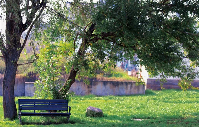 繼續往前,大片綠色印入眼簾。騎累了坐在樹下乘涼,陽光透過樹蔭星星點點的灑在海面上,沒有比這更愜意的悠閑時光了。