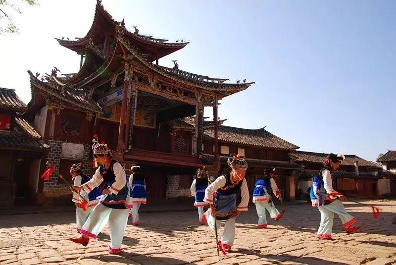 古戲臺是寺登四方街上最具特色的古建筑,每逢民族節日,沙溪白族兒女各自身著節日盛裝,彈著龍頭三弦,齊聚四方街,在戲臺上載歌載舞。
