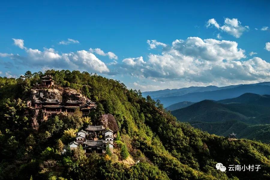 寶相寺位于佛頂山上,依山建筑在一堵高聳險峻的大石崖上,下層是大殿,二殿為寺觀,鑿石抬梁,被譽為“云南的懸空寺”。