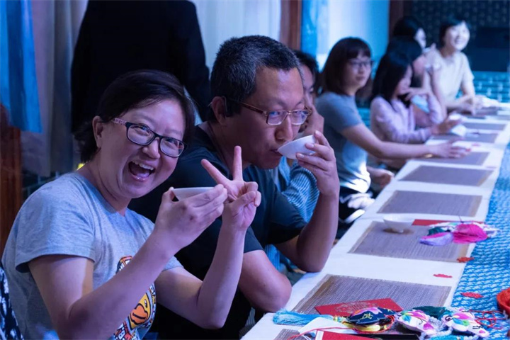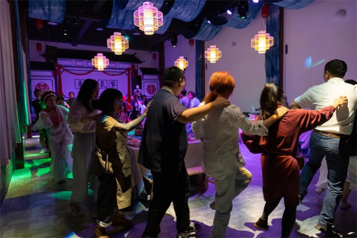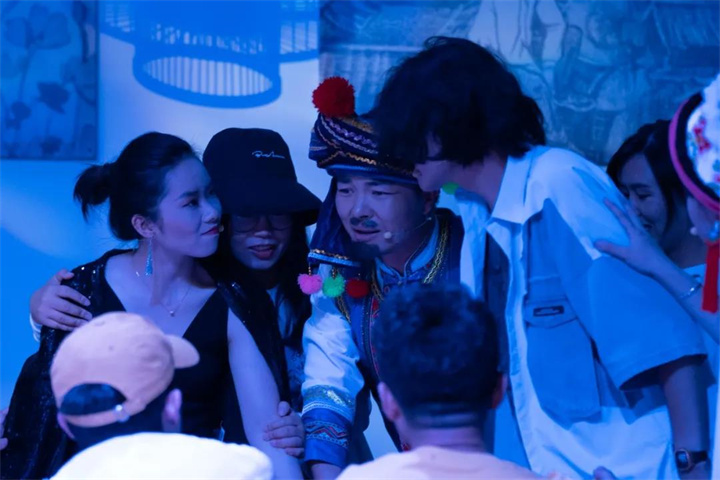 漢族新郎周全與白族新娘楊金花在結(jié)婚的過(guò)程中發(fā)生爭(zhēng)執(zhí),來(lái)參加婚禮的情侶安然與林雨伊也在婚禮現(xiàn)場(chǎng)起矛盾并爭(zhēng)吵的故事。這一故事看似是戀愛(ài)的矛盾,更深層次展現(xiàn)的是在現(xiàn)代社會(huì)中年輕人不同婚戀觀的碰撞,讓人深入思考現(xiàn)代愛(ài)情與婚姻的問(wèn)題。《一苦二甜三回味》戲劇最有趣最吸引人的地方不僅在于它的情節(jié)和故事,而且這是一出觀眾參與度高的沉浸式戲劇,觀眾在觀劇過(guò)程中不僅融入表演,成為整部劇不可或缺的一員,還能親身體驗(yàn)到大理白族的三道茶等非物質(zhì)文化遺產(chǎn)。