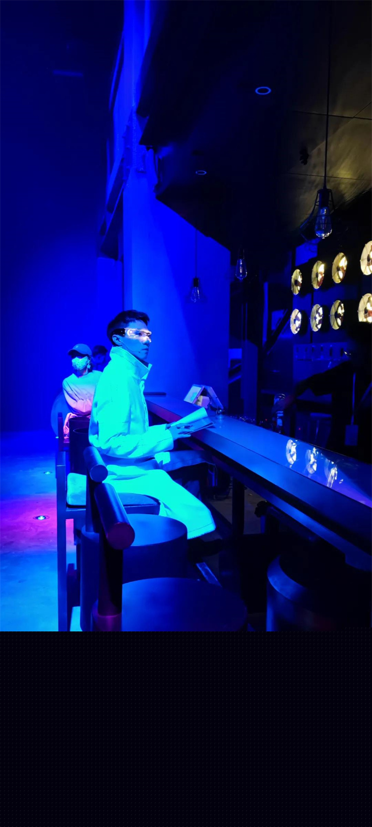戲劇體驗通道分為A線和B線。A線以完美女王和平凡男孩阿t的愛情故事為主線,唯美浪漫;B線解密圖靈教授的內心和隱秘,充滿反轉和沖突。3500平方米的老廠房,以“變壓”為創意進行改造,形成了具有沖擊力的情緒酒吧、欲望花園、秘密試驗場與心音嗨場四大主題空間,整個變壓工廠都是《幻境2099》的舞臺。